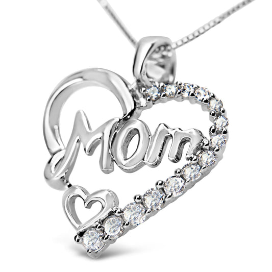 .925 SS 1/4 Cttw Round Diamond "Mom" Heart Pendant 18"(I-J,I3)
