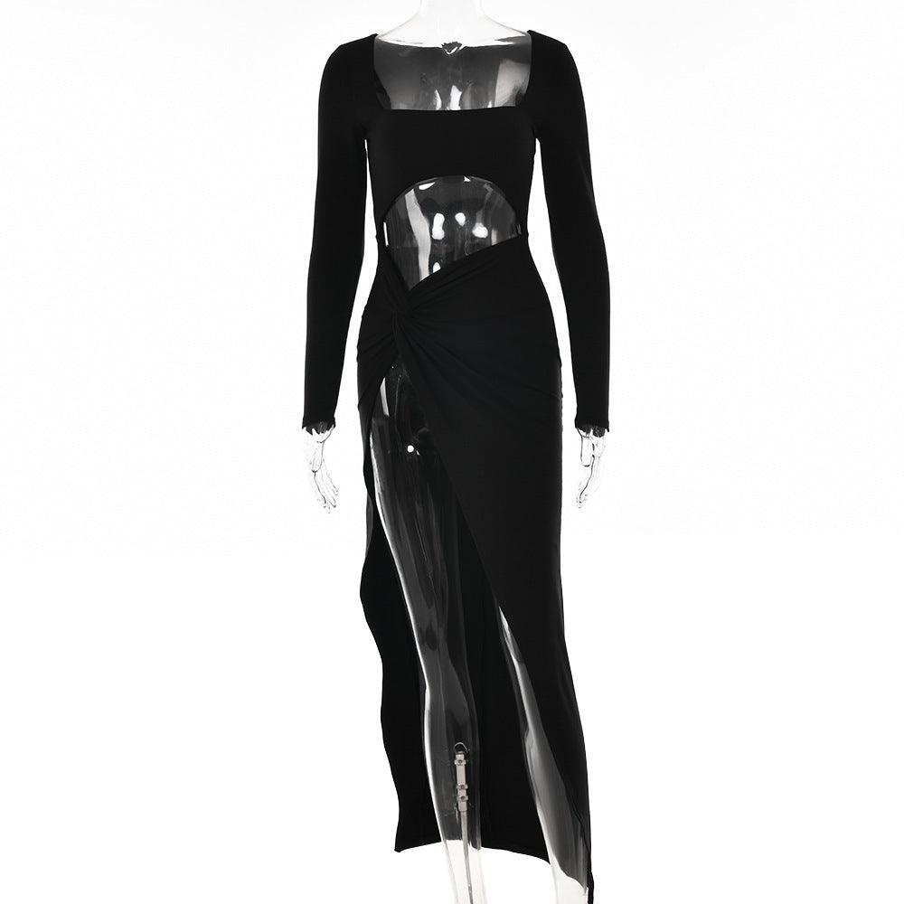 Womens Clothing Long Sleeve Dress Fashion Hollow U-neck Split Dress Party Wedding